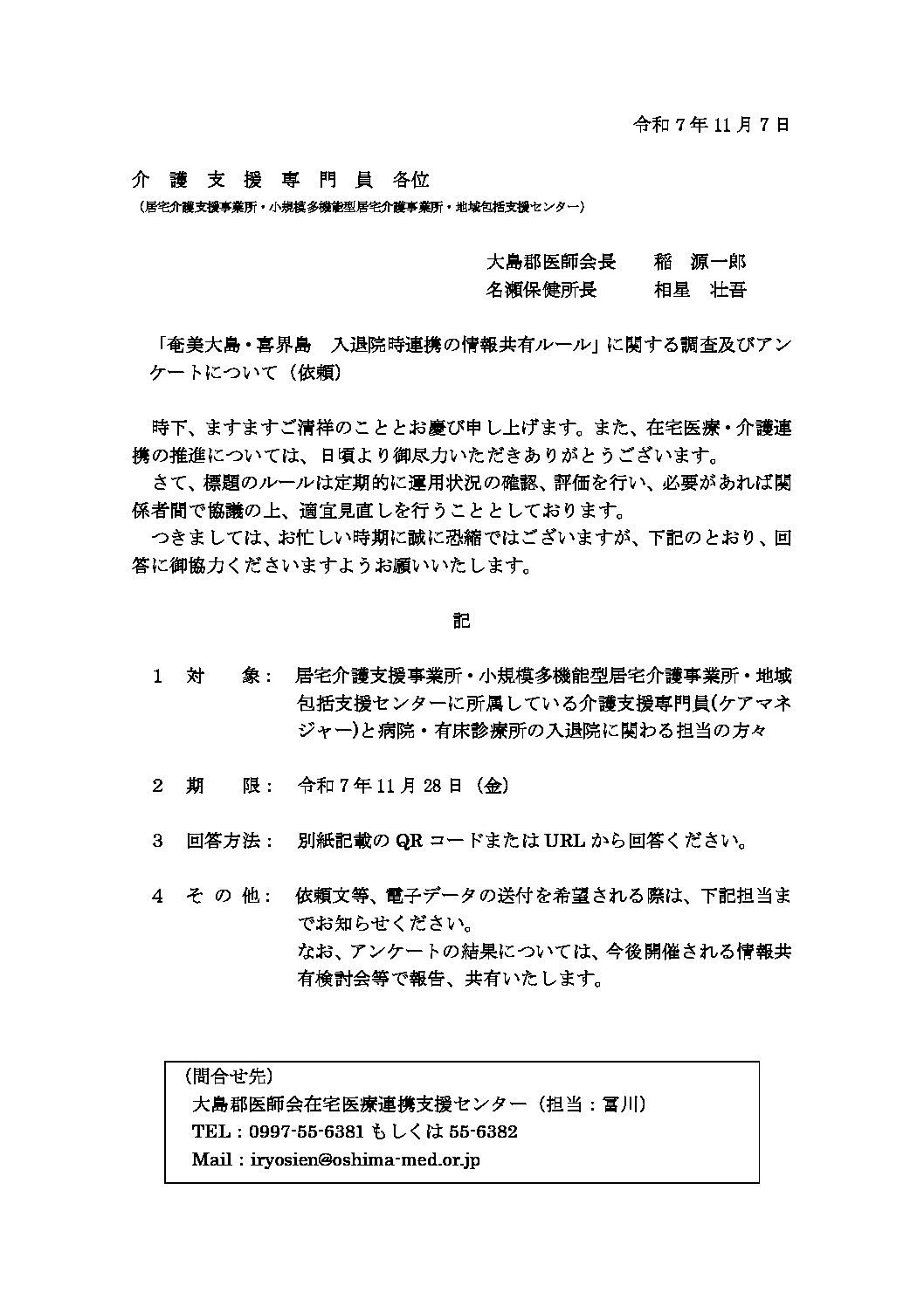 時下、ますますご清祥のこととお慶び申し上げます。また、在宅医療・介護連携の推進に 続きを読む 【令和7年度入退院時連携の情報共有ルール調査及びアンケートについて】