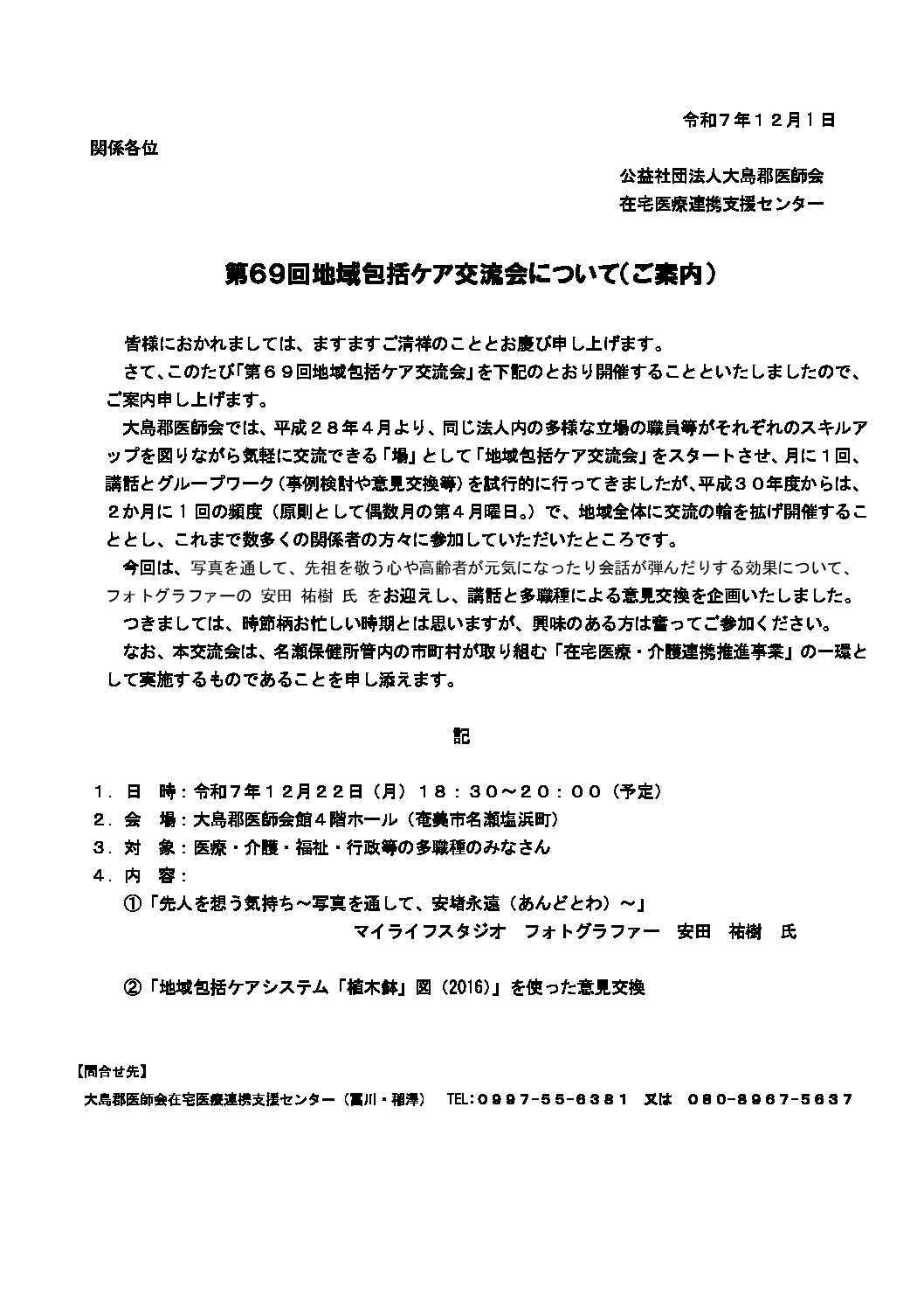 皆様におかれましては、ますますご清祥のこととお慶び申し上げます。さて、このたび「 続きを読む 第69回地域包括ケア交流会について(ご案内)