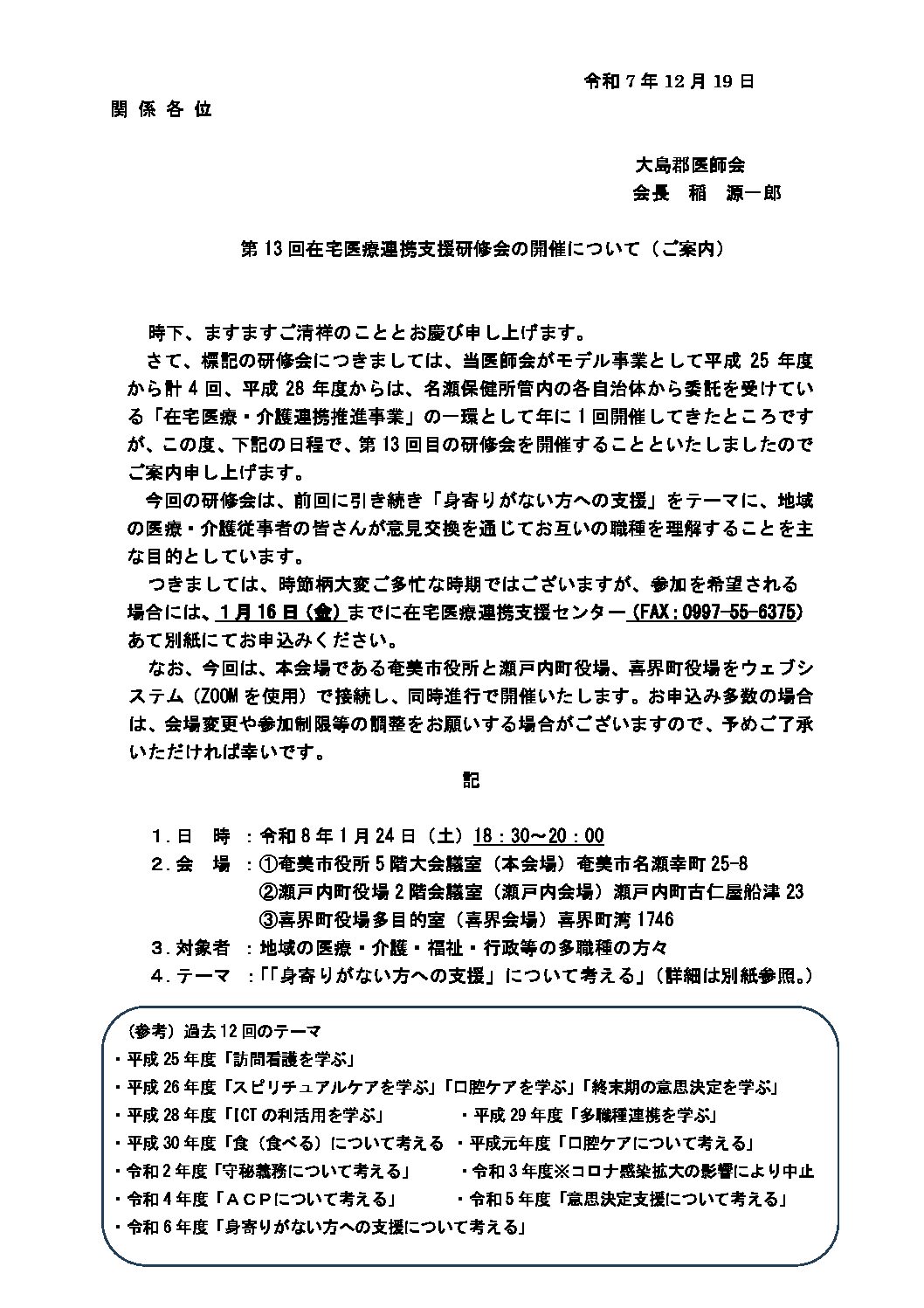 第13回在宅医療連携支援研修会の開催について(ご案内)