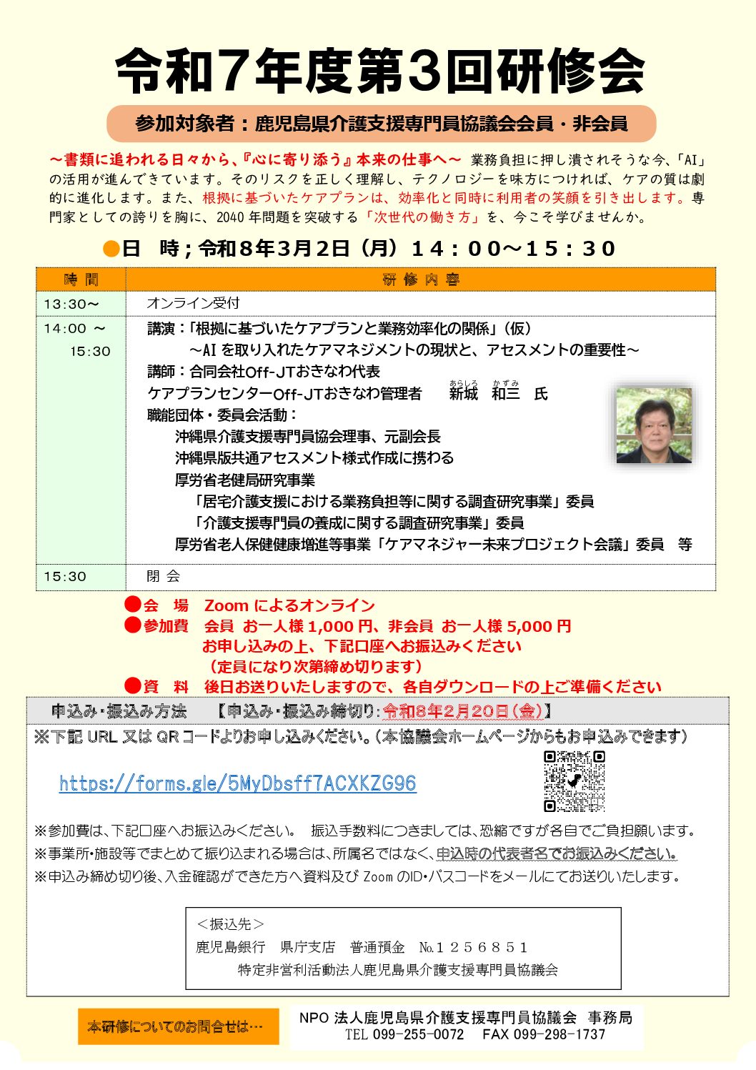 ●日 時;令和8年3月2日(月)14:00~15:30 講演:「根拠に基づいたケ 続きを読む 【県協議会第3回研修会のおしらせ】